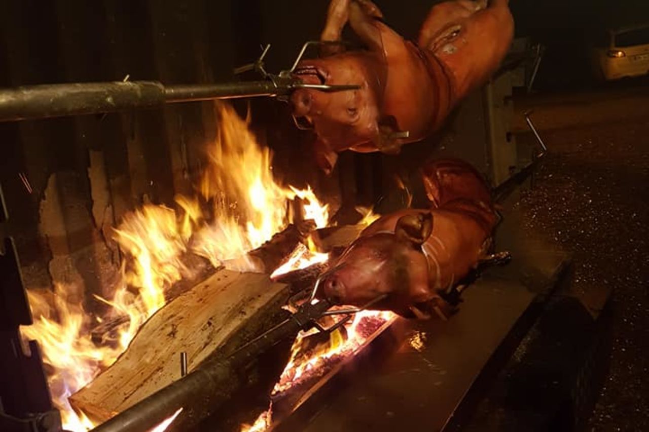 Cochon griller au feu de bois